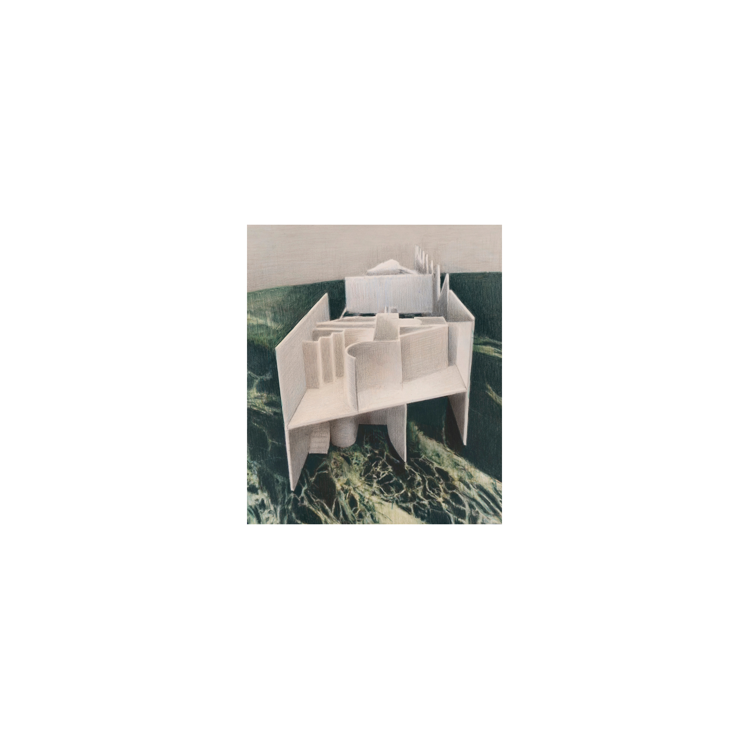 Lápiz, carbón, acuarela y pastel sobre papel